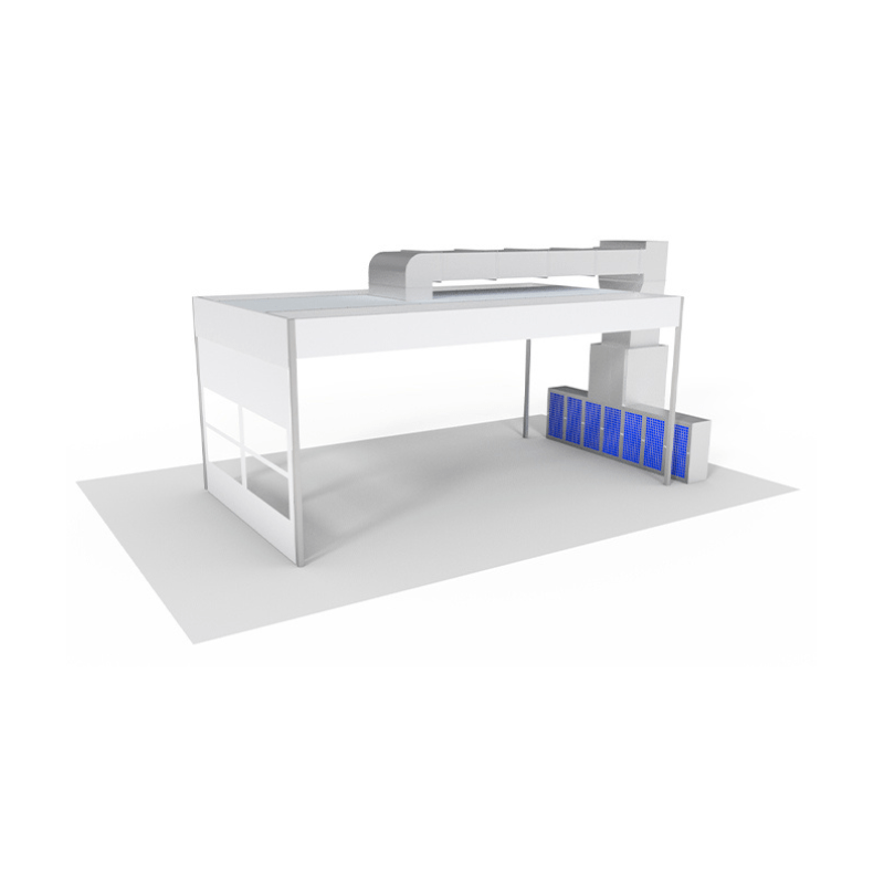 Structure autoportée Aire de préparation peinture – paroi d’aspiration + plénum + rideaux coulissants