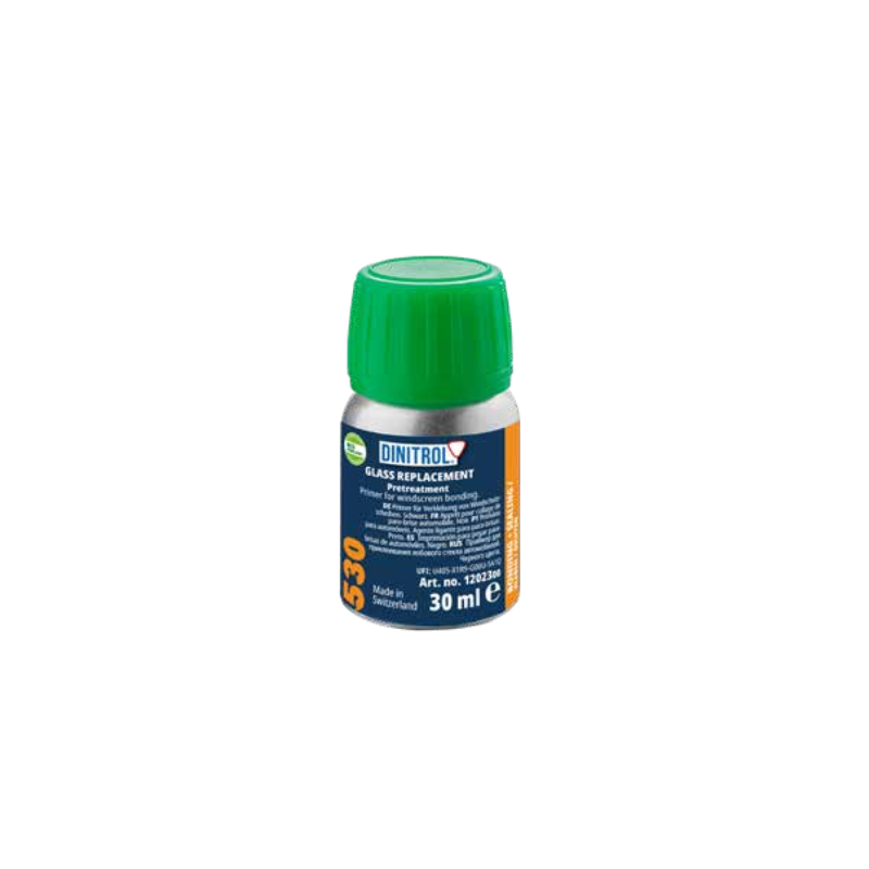 Primaire Verre/Métal peint noir destiné à préparer le vitrage préalablement dégraissé/activé à la dépose de la colle polyuréthane sélectionnée. Ce produit est un primaire filmogène destiné à protéger les surfaces de collage des éventuelles infiltrations ponctuelles des rayons solaires et optimise également l’adhérence des colles parebrises. D-530 présente un bon accrochage sur des matériaux tels que métaux bruts, notamment l’aluminium, le verre, la céramique ainsi qu’un grand nombre de matières thermoplastiques ou thermodurcissables.