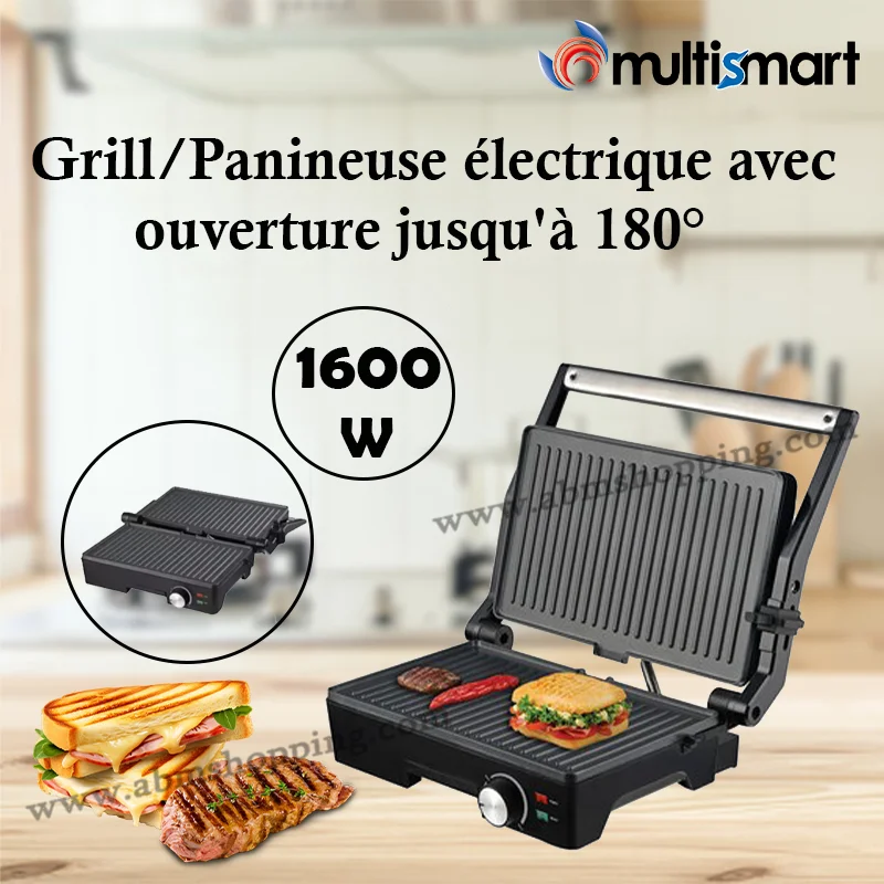 Grill/Panineuse électrique avec ouverture jusqu’à 180°,1600W | Multismart