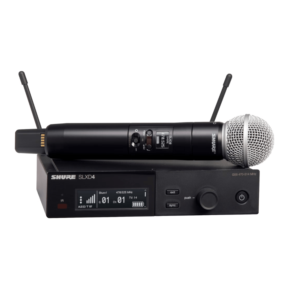Le système est doté de la légendaire capsule de microphone dynamique cardioïde SM58, le tout monté sur l’émetteur à main sans fil SLXD2. Le système SLXD24/SM58 offre donc un son numérique pur possédant une grande stabilité HF, recommandé pour les salles de conférence et les spectacles live.