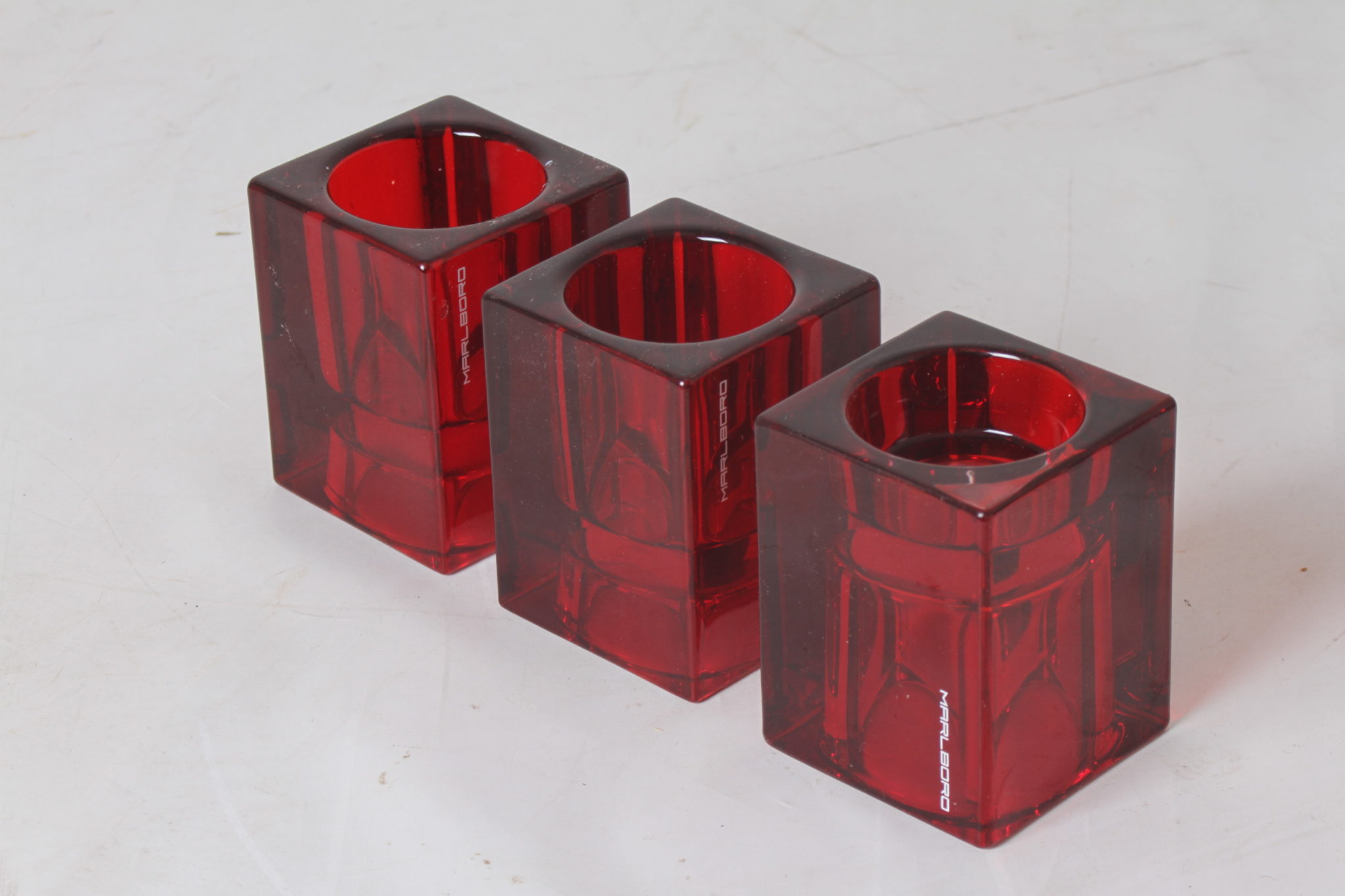Trio de bougeoires en verre rouge Marlboro