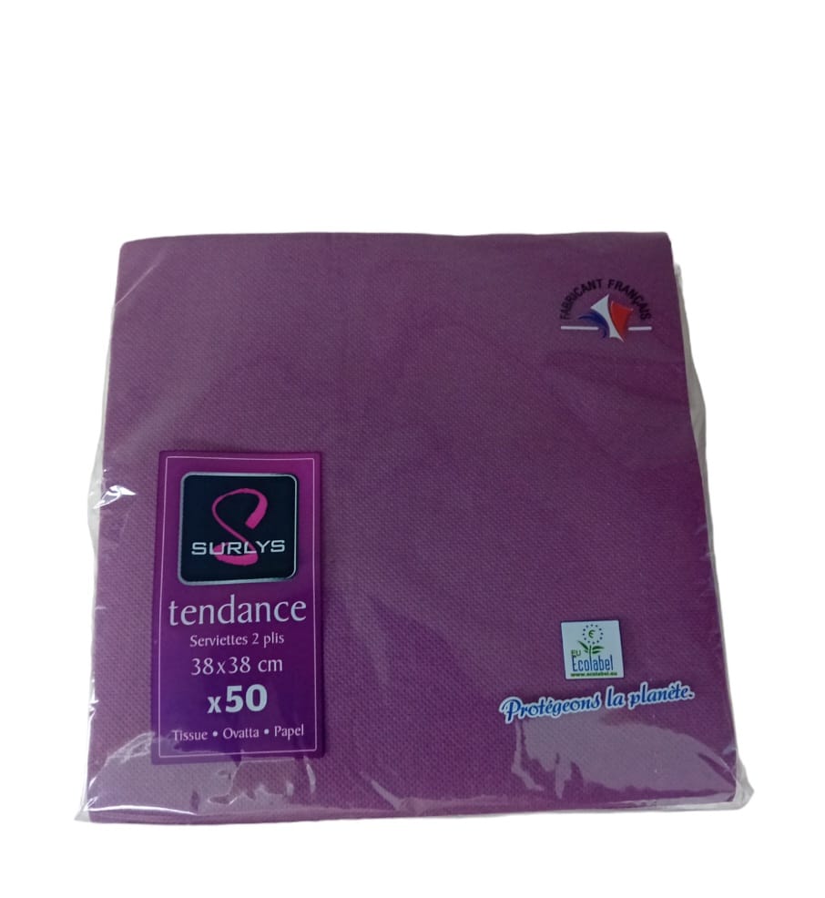 Serviettes de Table Prune en ouate de cellulose micro gaufrés, 2plis Pliage 1/8 (38x38cm)