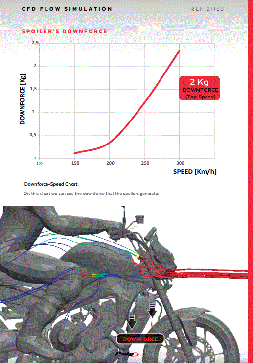 L’aileron frontal favorise l’appuient sur le train avant pour plus d’adhérence.