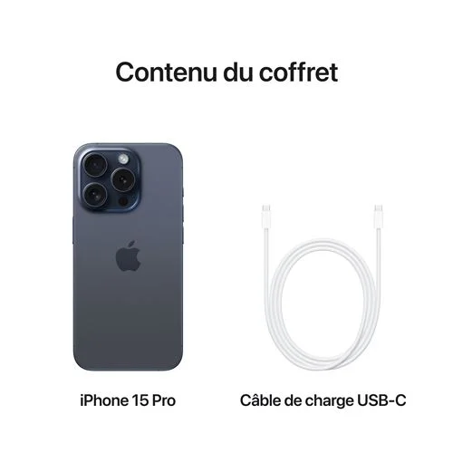 Le système photo pro de l’iPhone 15 Pro intègre 7 objectifs professionnels pour des résultats photographiques exceptionnels. L’appareil photo principal de 48 Mpx capture des détails saisissants, tandis que le téléobjectif 3x offre une liberté de cadrage inédite pour des gros plans impeccables. - Connectivité Avancée et Sécurité Essentielle :