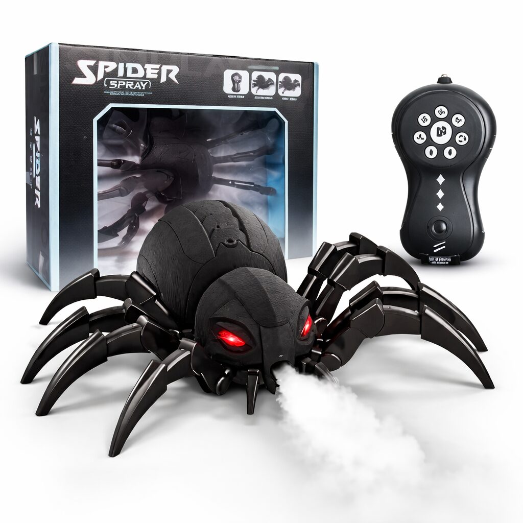 Effrayante et spectaculaire, cette araignée RC électrique diffuse une fumée réaliste tout en se déplaçant avec précision. Idéale pour Halloween, anniversaires et cadeaux originaux.