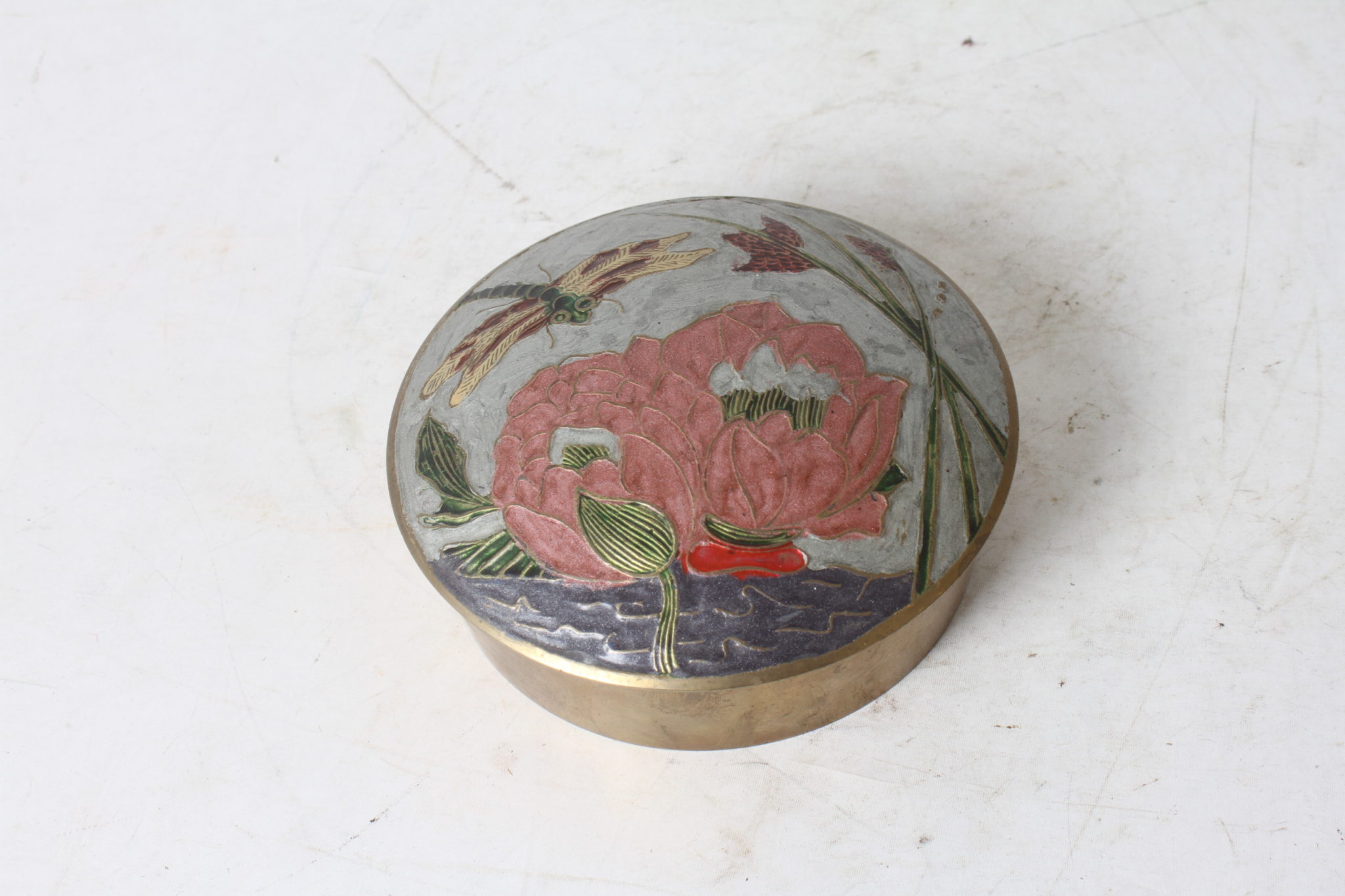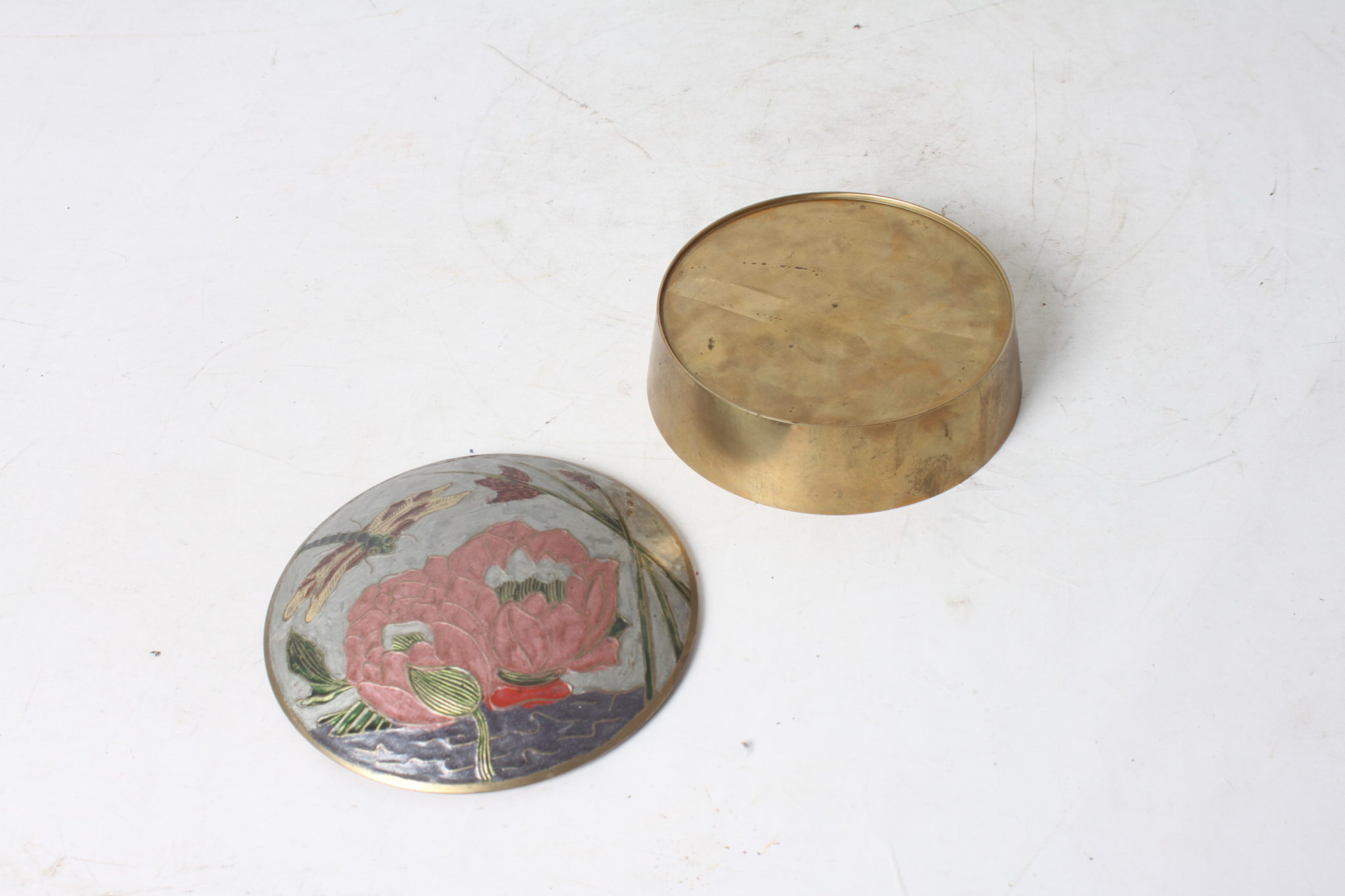 Boîte en laiton, couvercle émail cloisonné.