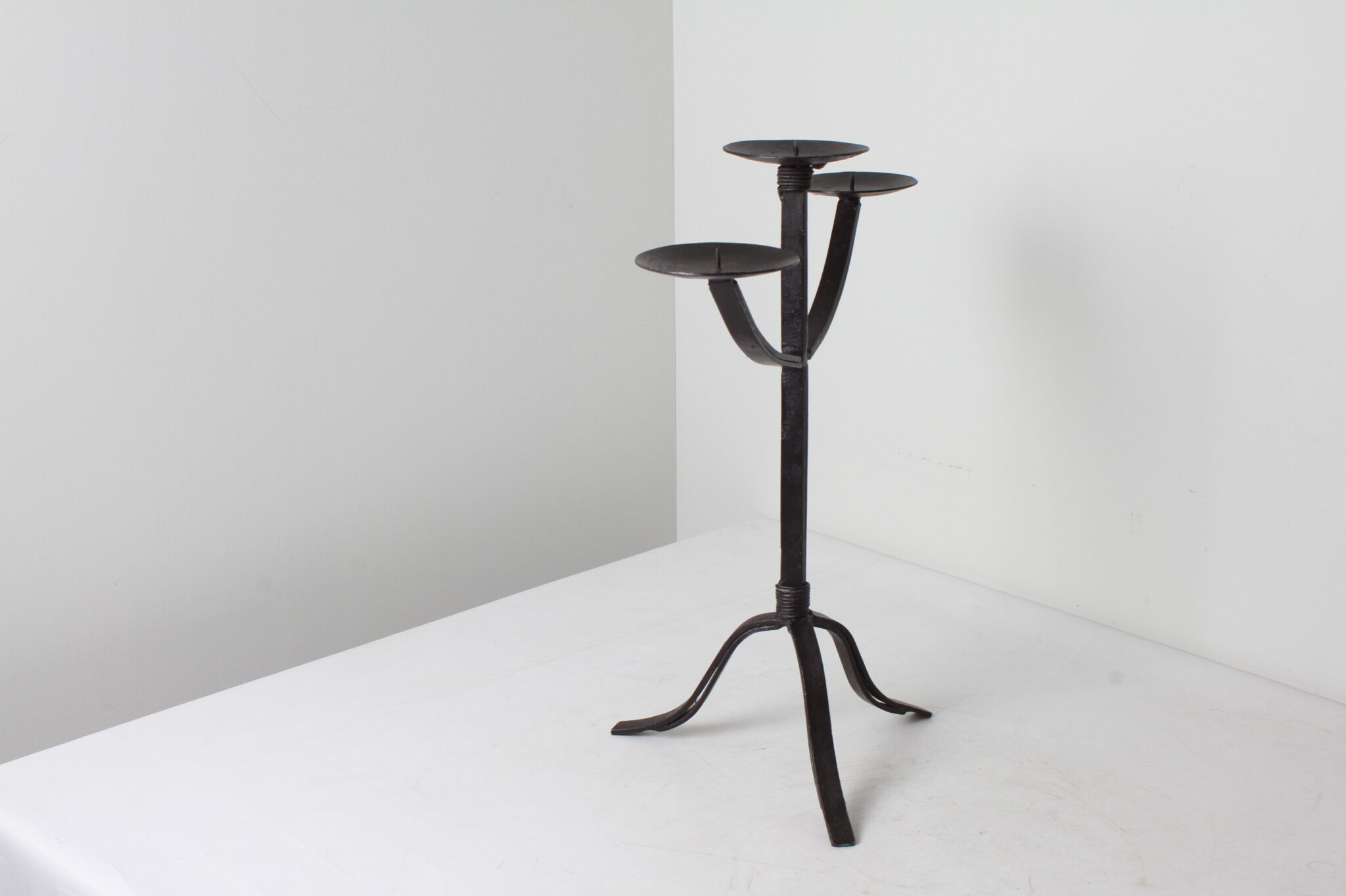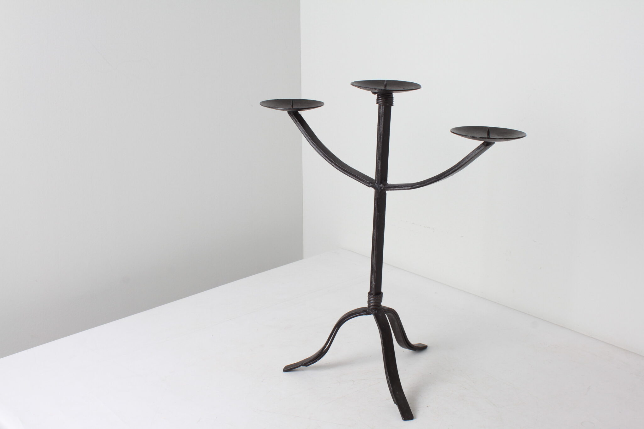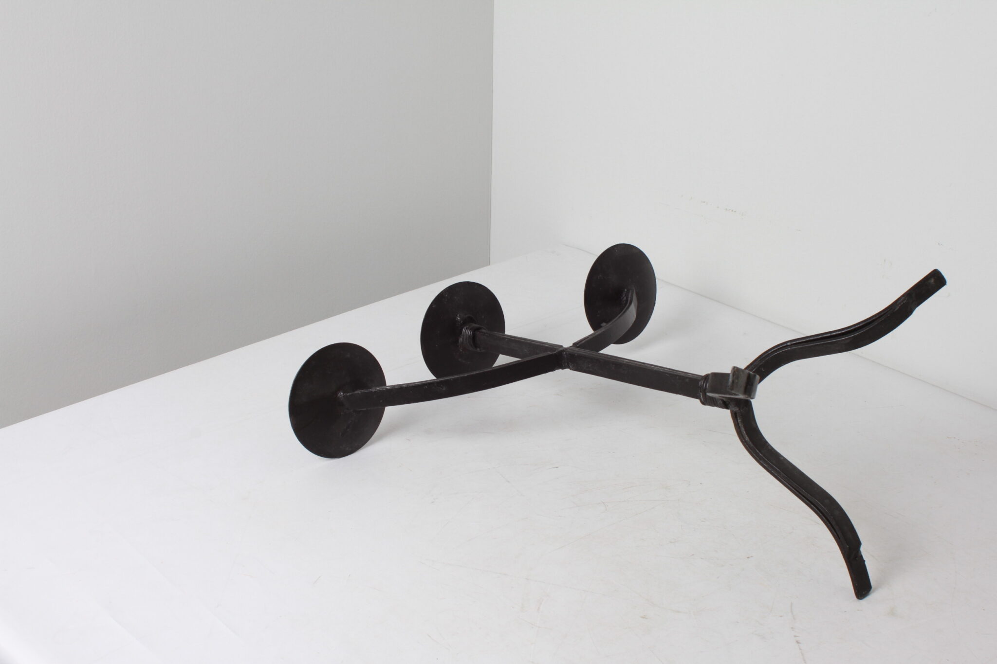Grand chandelier à 3 branches en métal noir ,art brut ,minimaliste.