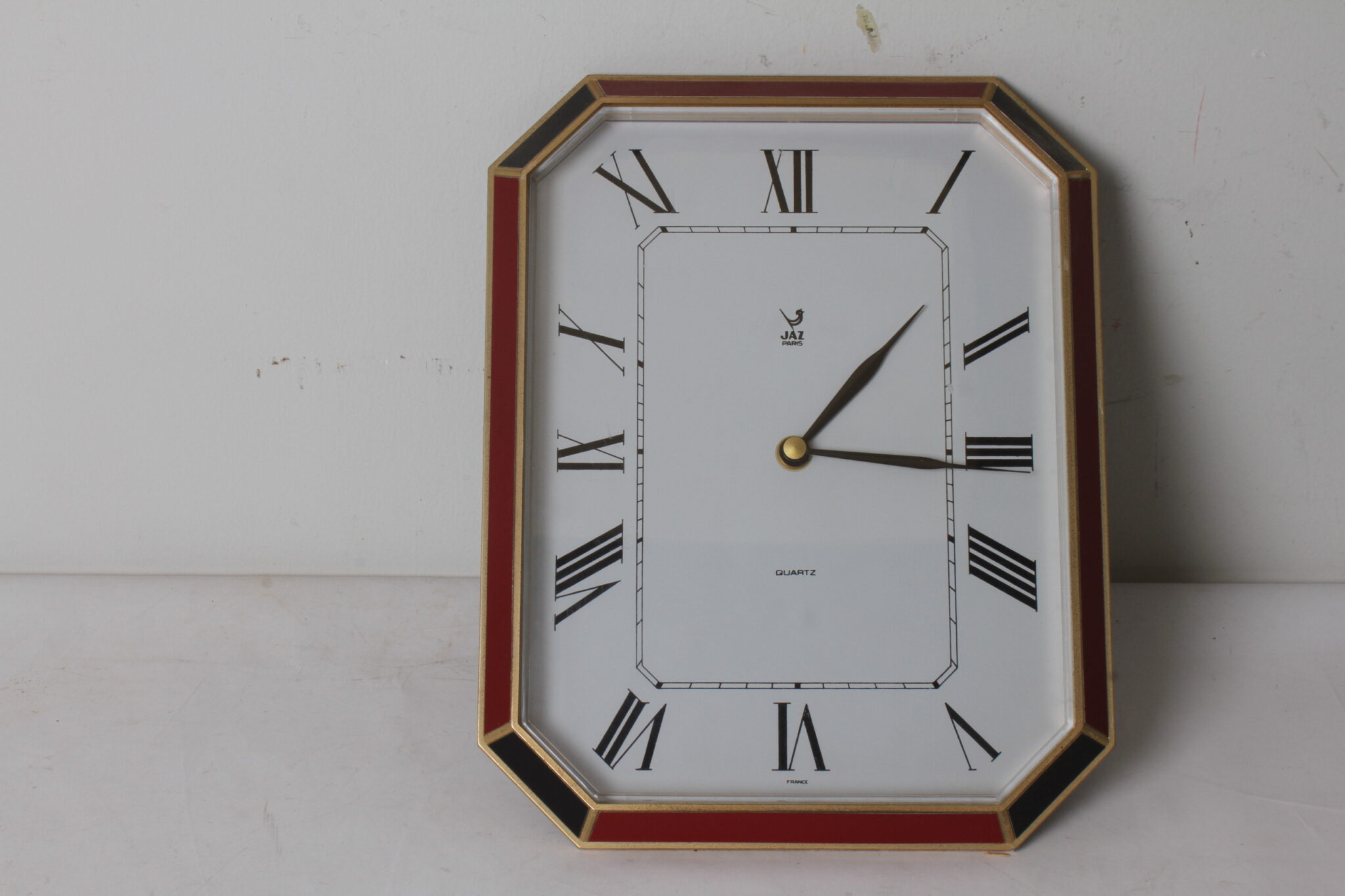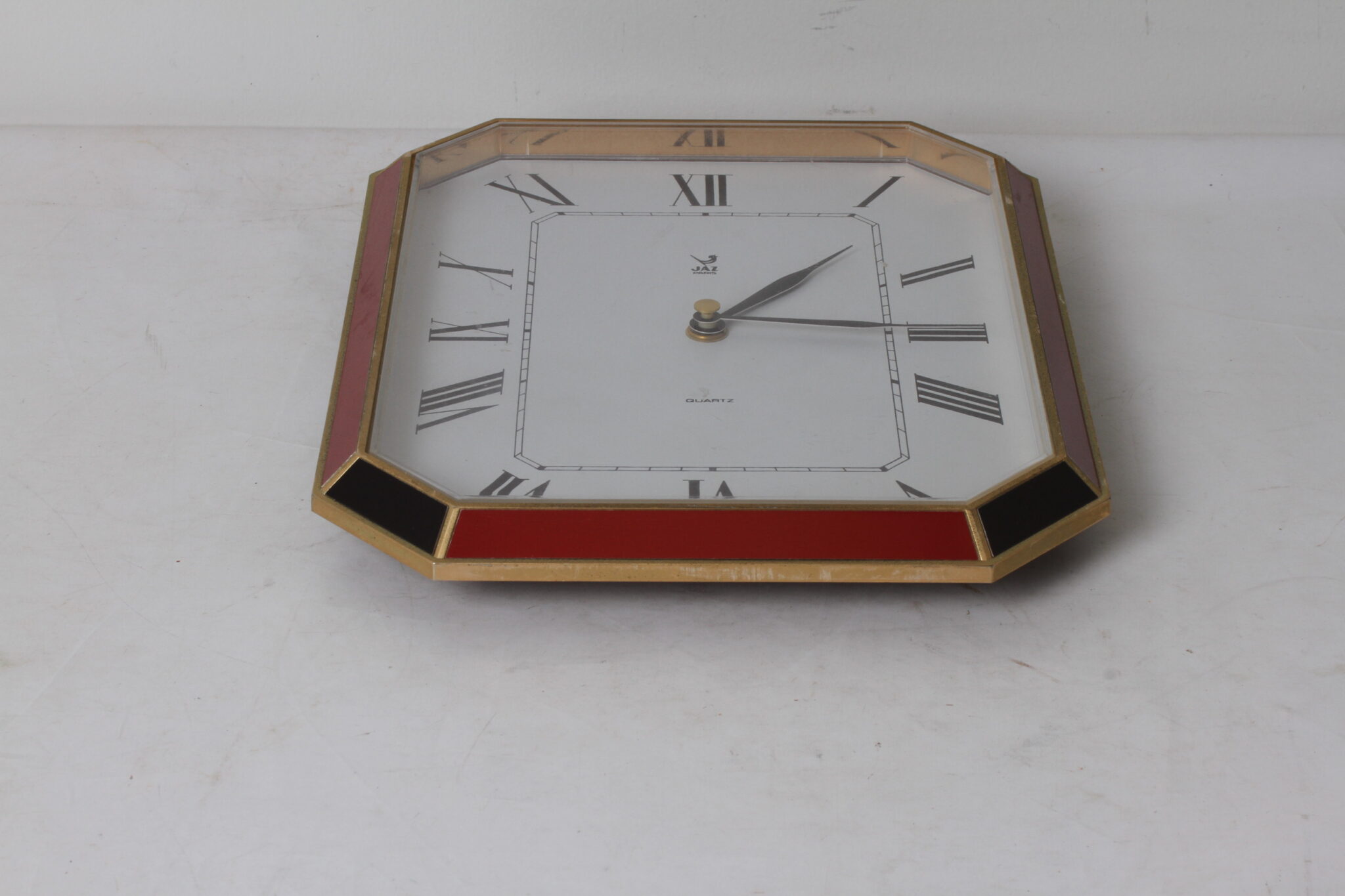 Horloge murale vintage de la marque Jaz Paris, de forme octogonale.