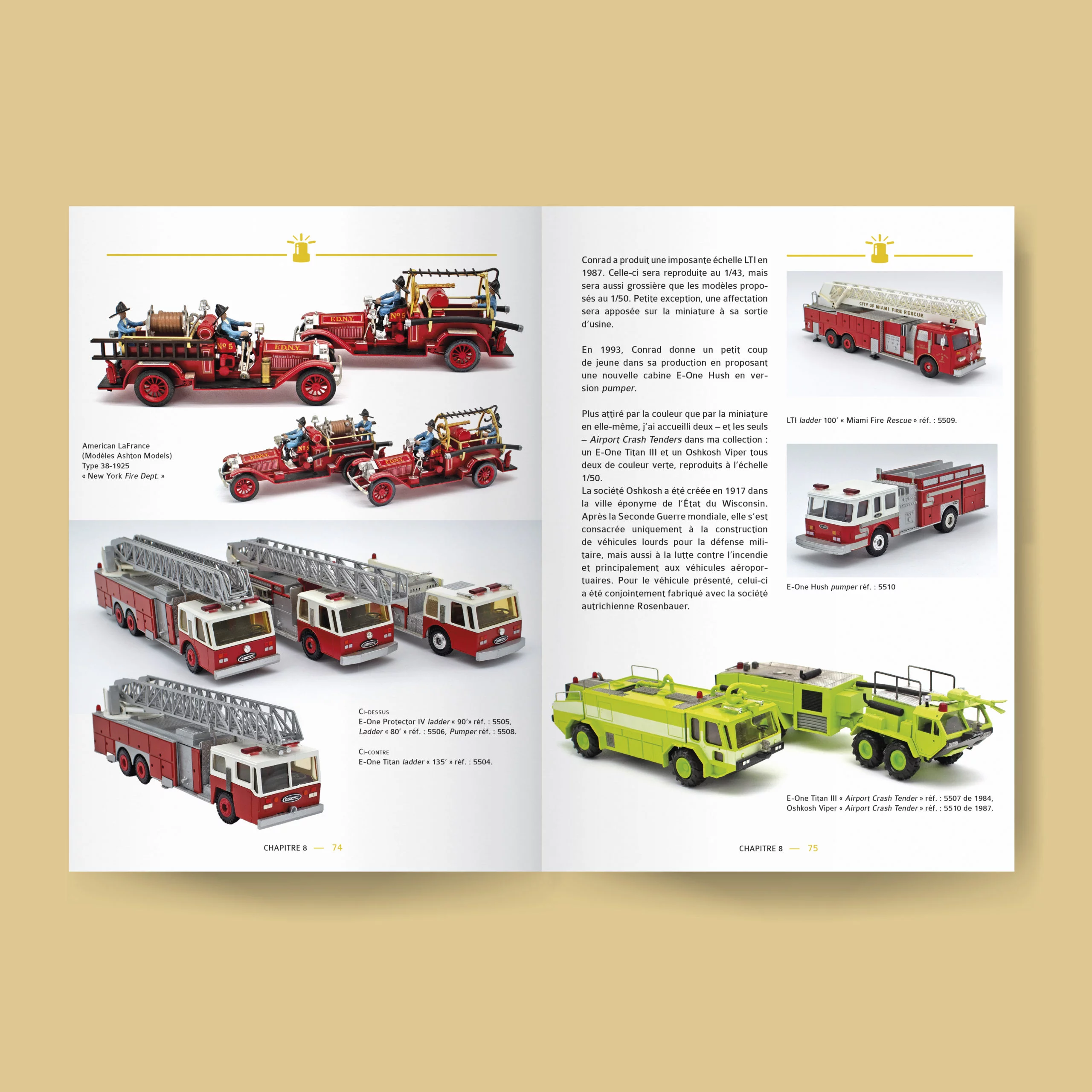 Pour la première fois en langue française, vous pourrez parcourir les quelque 600 références richement illustrées des miniatures de véhicules de pompiers américains dans cet ouvrage exclusif ! En passant par les pompiers de New York, Chicago, Washington et Boston, mais aussi par les plus grands fabricants de miniatures comme Corgi Toys, Code 3, Athearn Models ou Fire Replicas, retrouvez 50 ans de collection de miniatures de pompiers made in USA et laissez vous emporter par votre âme d’enfant…