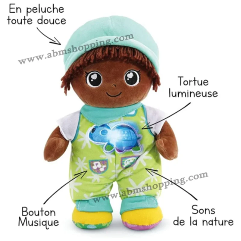- La poupée comprend 3 chansons chantées et 40 mélodies/berceuses.