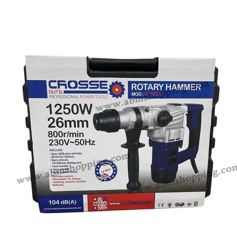 - En résumé, la Perceuse à percussion électrique | Crosse 1250 W 26 MM 800 tr/min 230 V-50 Hz est l’outil idéal pour obtenir des résultats professionnels à la maison ou sur chantier. Investissez dès aujourd’hui dans cette perceuse fiable et découvrez l’alliance parfaite entre puissance, confort et polyvalence.