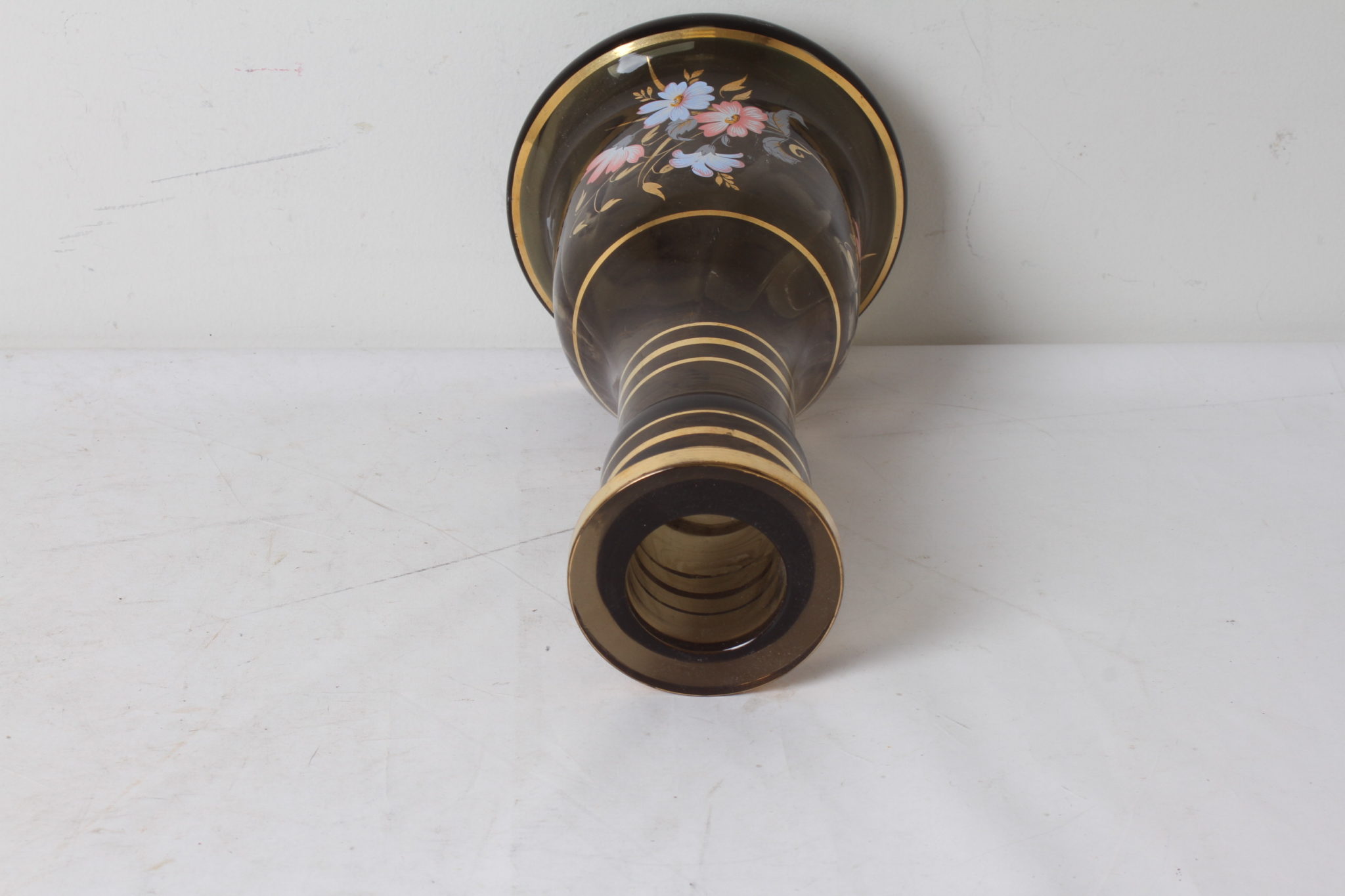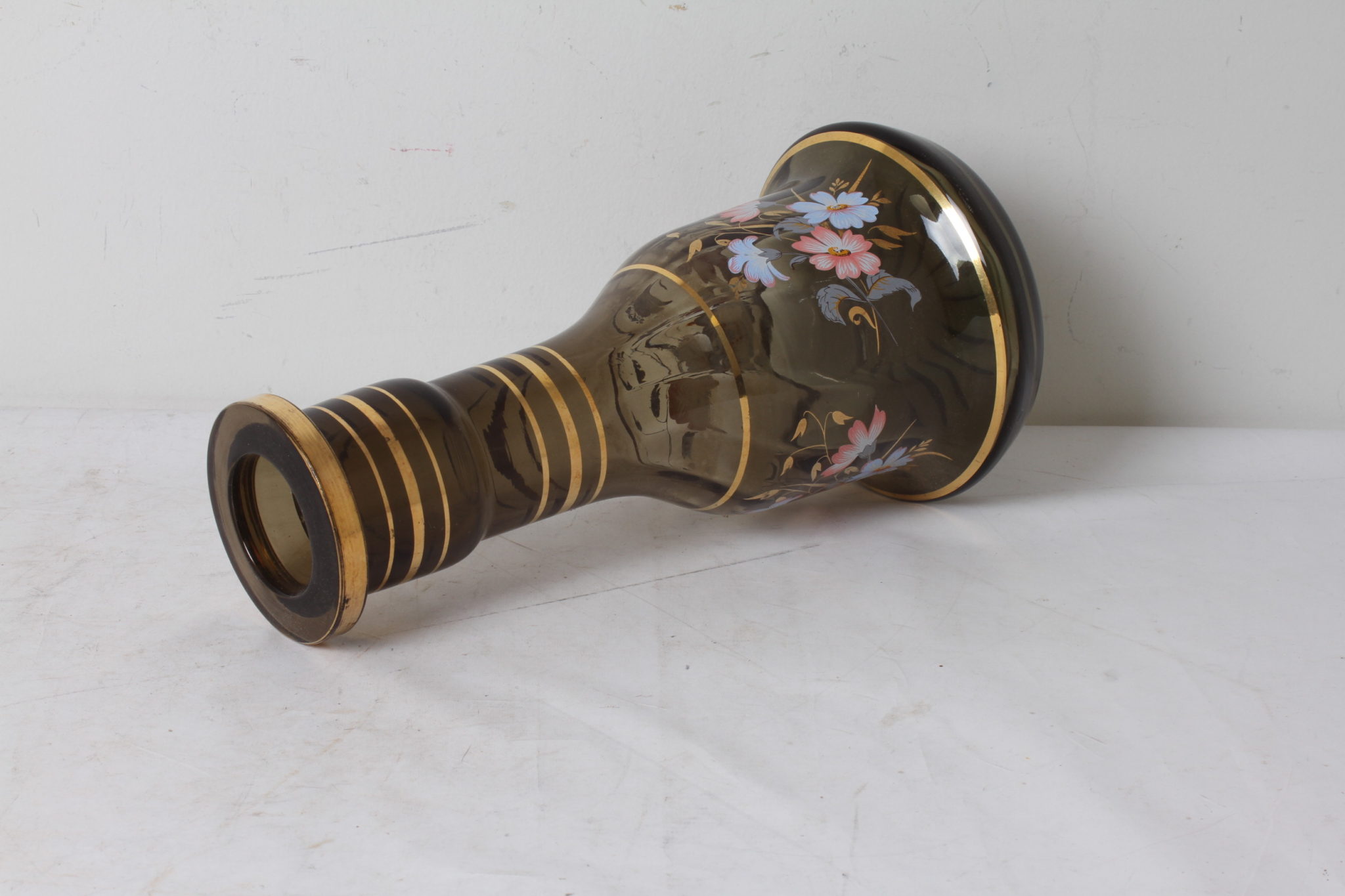 Vase de narguilé en verre brun aux motifs floraux.