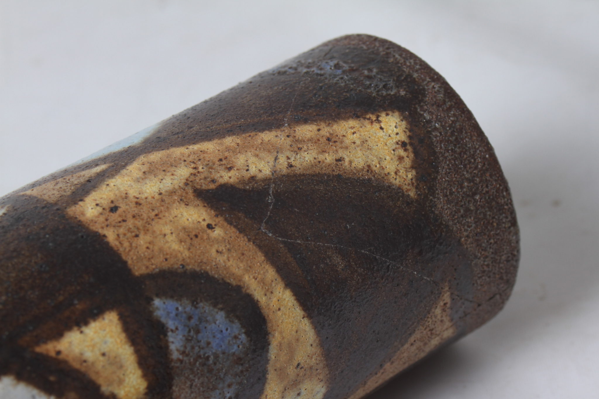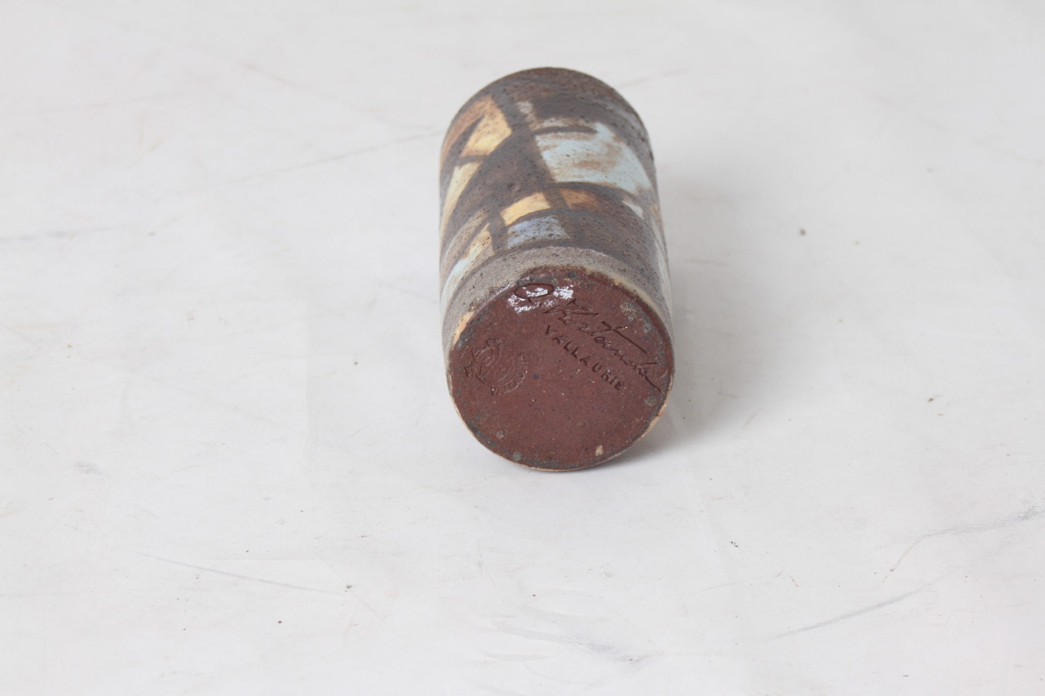 Vase en céramique émaillée à décor géométrique fabriqué à Vallauris par Alexandre Kostanda.